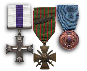Ricevette la Military Cross il 16 settembre 1918, la Croix de Guerre con palma dalla Francia e, dall'Italia, la Medaglia di Bronzo al Valor Militare il primo novembre 1918.