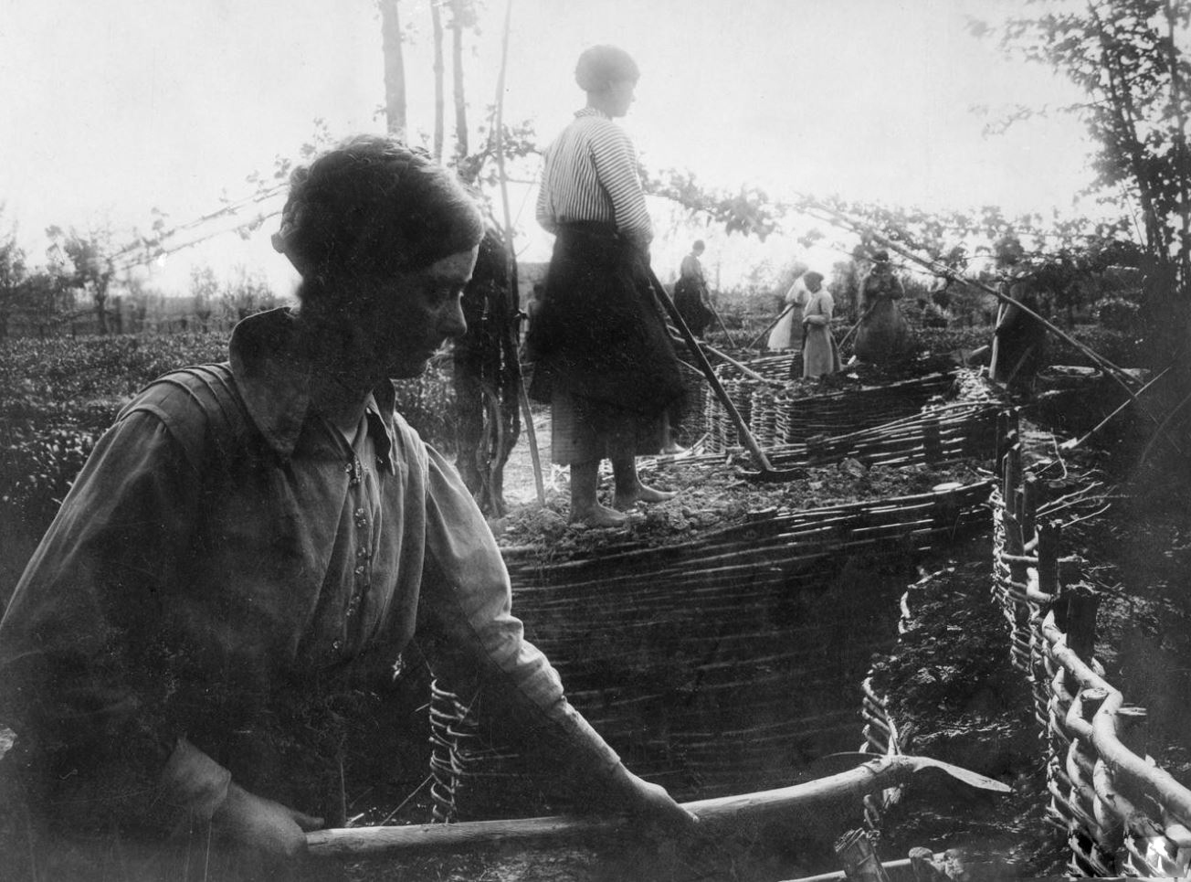 “ogni casa colonica nelle retrovie della pianura veneta si trasformò in una sorta di laboratorio militare dove giovani ragazze, bambini e donne preparavano le spolette di filo spinato, assemblavano graticci e mascheramenti;