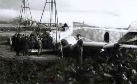 di recupero di un aerosilurante SM.79 atterrato fuori campo