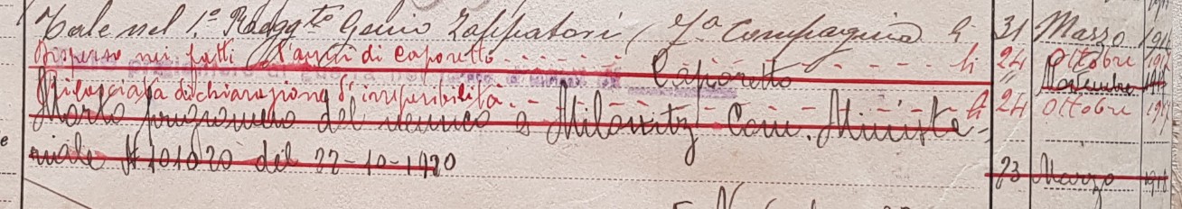 "Rilasciata dichiarazione di irreperibilità il 24 ottobre 1917."