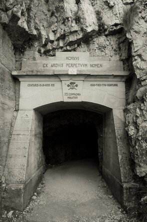 Lavorando incessantemente con martelli pneumatici ed enormi quantità di esplosivo, i minatori del genio riuscirono a portare a termine l'opera in soli nove mesi consentendo il transito delle colonne di rifornimenti che, sottraendosi al fuoco nemico, poterono sostenere le truppe al fronte garantendo, così, la tenuta delle nostre posizioni.