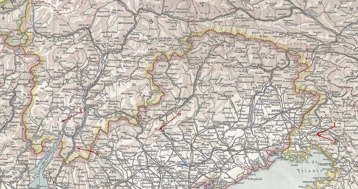 CARTA GEOGRAFICA DELL'EPOCA CON I CONFINI NAZIONALI AL 24 MAGGIO 1915